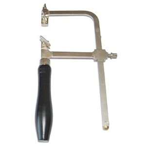 Product Description : Jewelers Saw Frame and 12 Intricate Cutting Saw Blades This Jewelers saw set includes an adjustable 6" saw frame plus 12 intricate cutting saw blades This Jewelers saw set is ideal for cutting jewelry chain, wood, thin metal sheet, fiber glass etc This Jewelers saw set is made with strong metal frame for strength and agility This Jewelers saw set comes with carved and polished wooden handle for comfortable and secured grip This Jewelers saw set features thin and tough blades for intricate cut This Jewelers saw set approximately measures 6" x 2 1/2" NOTE: picture for illustration purpose only, item design and appearance may differ from pictures shown