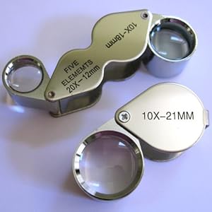 Category: Tools & Home Improvement Vendor: The set includes three 10x 21mm chrome loupe and three 10x&20x dual loupe The 10x power loupe has a focal distance of 1" (26mm)
