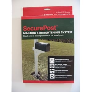 Product Description : SecurePost was designed to be an inexpensive way to permanently straighten a mailbox or any 4x4 post. SecurePost can also be used for new post installations without the inconvenience or mess of caustic concrete. Install normally completed in about 10 minutes using only a shovel, hammer, and scissors. Works by spreading the forces of wind and snow to the SecurePost device and the multiple stakes. More effective and easier install than single point products such as stakes, spikes, and corkscrews. SecurePost can be easily adjusted or reused and will most likely outlive your wooden post.